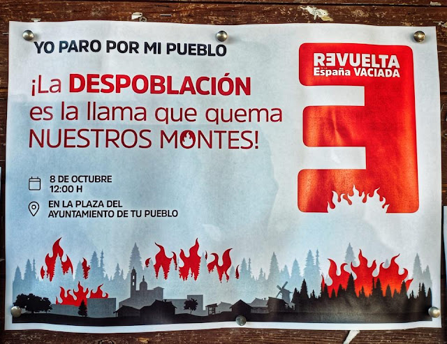 El sábado 8 de octubre, a las 12 de la mañana, ha tenido lugar una concentración en el anfiteatro, convocada por La Revuelta de la España Vaciada. La jornada "yo paro por mi pueblo" este año reclama otro modelo de gestión forestal para evitar los incendios. El lema es "La despoblación es la llama que quema nuestros montes". Al finalizar la concentración se leyó un comunicado.