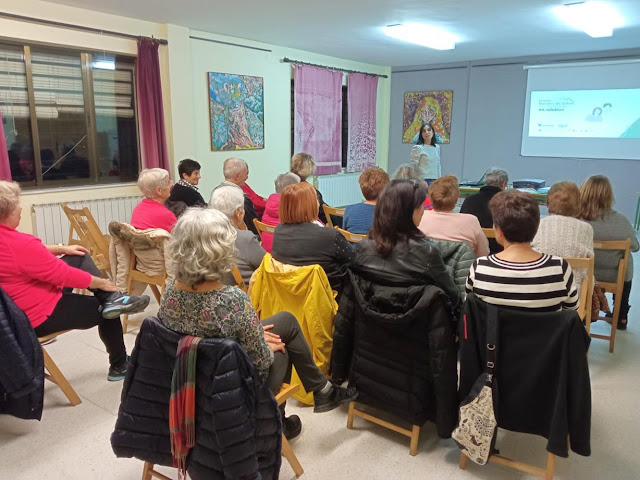 El pasado lunes tuvo lugar la primera de las charlas formativas que, dentro del programa Escuelas Rurales de Salud ofrecen los farmacéuticos en los municipios de Castilla y León con menos de 5000 habitantes. Esta primera charla iba dirigida a personas adultas y planteaba temas como el envejecimiento saludable y ejercicio físico, cribado de enfermedades, prevención de la malnutrición y salud en el trabajo. En nuestro caso, la encargada de ofrecer estas charlas es María, nuestra farmacéutica.